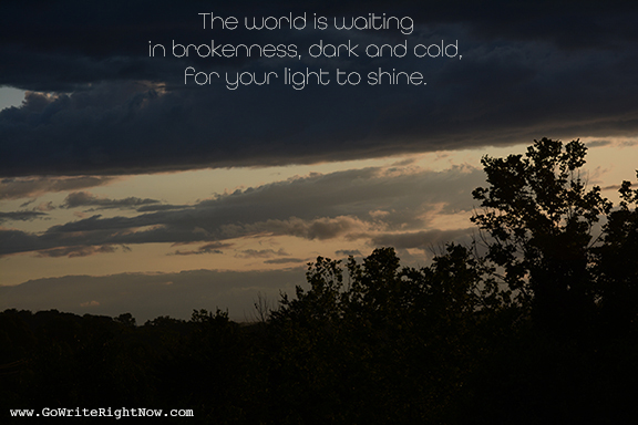 She thought for a moment and said, “That’s why the light is so important. What you’re writing is important and you need to do it, but you also need to find the light. Find something lighthearted to watch or read – or better yet, something to write.”