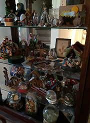I also collect nativity sets. Some are set out for the season; others are on permanent display in this glass case: